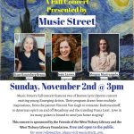On Sunday, November 2, at 3pm, at the West Tisbury Library, Music Street musicians will present a concert titled, “All Kinds of Love.” This concert features soprano Josie Larsen, tenor Morgan Mastrangelo, and pianist Diane Katzenberg Braun. Free and open to the public. “Music Street’s fall concert features two of Bosto , ...