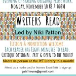 Afterschool program for grades 4+. Come for homework help, read books, use computers, play games and hang with friends! , ...Writers Read (In-Person at the Library)7:00 pm - 8:00 pm