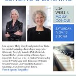 Join us at the West Tisbury Library for the MV Community Seed Library’s monthly “Seed Sorting & Tea” gatherings. Come chat, sip some tea, and process/sort seeds for the next growing season. All are welcome to bring plant material to save seeds from or process what we have. Seed envelopes and labels provided. Local , ...Longing and Listening: Concert with Lisa Weiss and Molly Conole3:30 pm - 4:30 pm