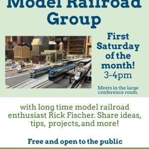 Come join us at a meeting of the Model Railroad Group on the first Saturday of each month! Meets 3-4pm, at the West Tisbury Library. Meets downstairs in the large conference room. Share ideas, tips, projects, and more! This group is led by long time model railroad enthusiast Rick Fischer. Free and open to the public! , ... - 4
