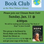 Come join us for our Climate Book Club at the West Tisbury Library! Our next meeting will be Sunday, Jan. 11 at 4:00pm. We will be reading and discussing “The Book of Hope” by Jane Goodall. This group is facilitated by Nicola Blake and Sue Hruby. Email the library at wt_mail@clamsnet.org to sign up and get , ...