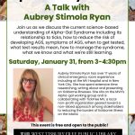 On Saturday, January 31, at 3pm, Aubrey Stimola Ryan will give a presentation at the West Tisbury Library about Alpha-Gal Syndrome. Join us as we discuss the current science-based understanding of Alpha-Gal Syndrome including its relationship to ticks, how to reduce the risk of developing AGS, symptoms of AGS, when to , ... - 1