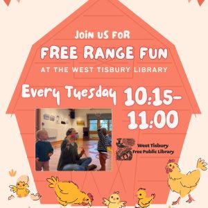 Enjoy a room filled with parachutes, scarves, bubbles, music and more to explore! Recommended for ages 0-5 , ...Work from Home from the Library11:00 am - 12:00 pmIn response to the growing needs of remote-working caregivers, our library is offering a unique and supportive program designed to make work-life balance a little easier. This program provides a safe and enriching environment for children while their caregivers work nearby. Caregivers who work remotely are invited to b , ...CLASS FULL! Writing Workshop Series with Moira Silva11:30 am - 1:00 pmRegistration is full. Starting January 13th, the West Tisbury Library will host a four-week writing workshop series with Moira Silva on Tuesdays from 11:30am-1pm: 1/13, 1/20, 1/27, 2/3. These sessions will meet in-person at the library. Please contact wt_mail@clamsnet.org to sign up. Space is limited. Participants are , ...Learning Lab (Grades 4+)3:00 pm - 5:00 pm