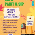 APPOINTMENT ONLY PLEASE Sign up for a one-on-one session with our tech savvy library staff, and upgrade your tech literacy. You can learn how to access e-books, audio books, language learning software, and streaming movies, all with the power of your library card, all for free. To make an appointment for tech assistanc , ...Kid’s Paint and Sip (ages 8+)1:30 pm - 3:00 pm