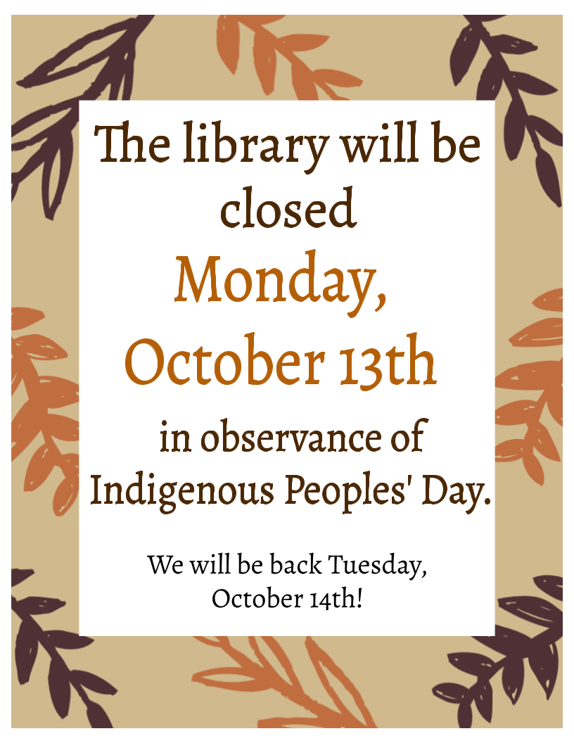 Closed in observance of Indigenous Peoples’ Day + Add to Google Calendar + iCal / Outlook export Date Oct 13 2025 Time 10:00 am - 10:00 am Share this event Search our Website Search for: