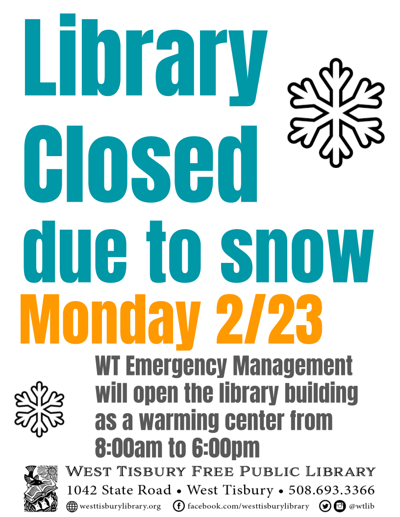Due to snow, the library will be closed for normal operations on Monday, February 23. WT Emergency Management will open the library building as a warming center from 8:00am to 6:00pm.
