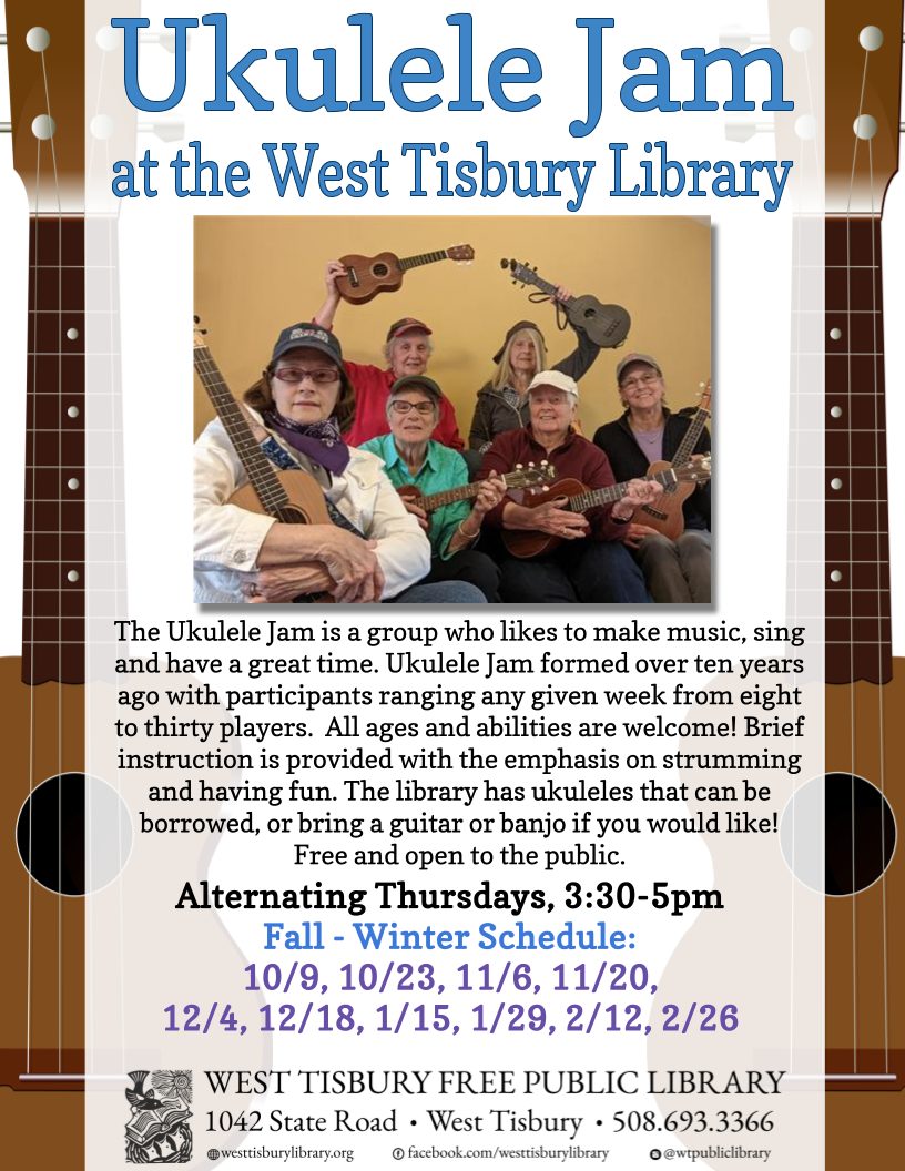 Come join the Ukulele Jam at the West Tisbury Library! Meets alternating Thursdays, 3:30-5pm